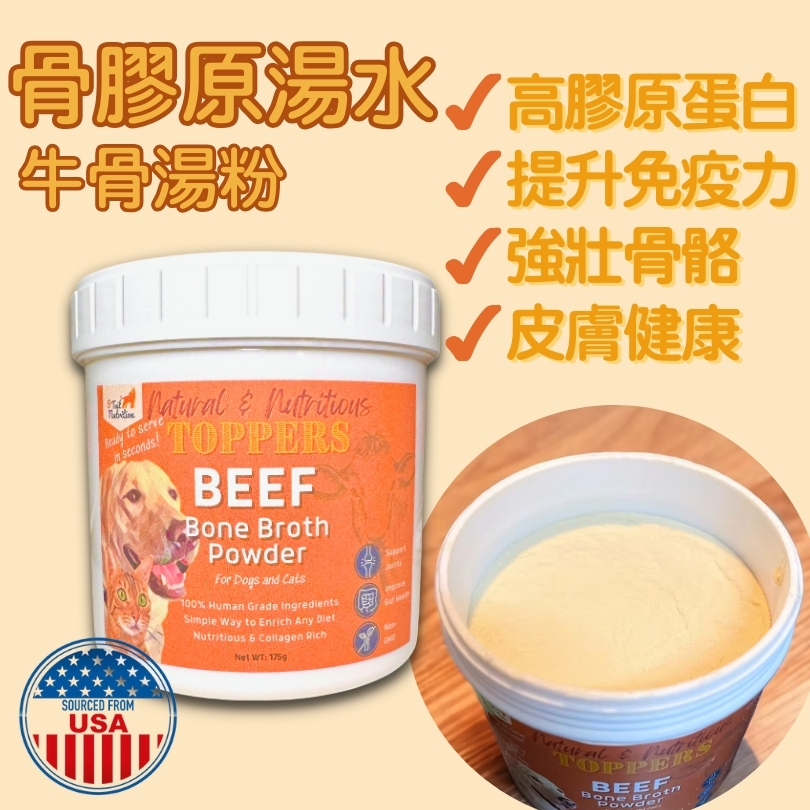 如果你的狗狗有腸胃敏感、關節僵硬或毛髮黯淡的情況,是時候為牠們的飲食升級了! 膠原湯牛骨湯粉 不只是一款餐粉,而是一種經科學支持、深受狗狗喜愛的超級營養來源 —— 幫助修復腸胃、強健關節、滋養皮膚毛髮。